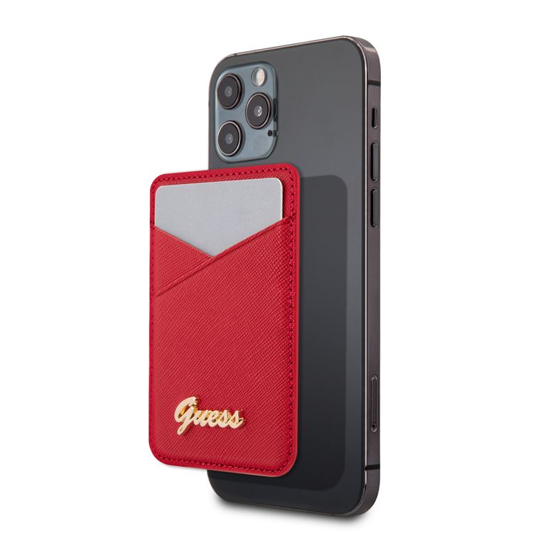 CG MOBILE Guess Saffiano Script Wallet Cardslot with Magsafe for iPhone 12 Pro Max, 12/12 Pro, 12 Mini, Magnetic Wallet Card Holder, Phone Back Slot Wallet Card Case Officially Licensed Red
