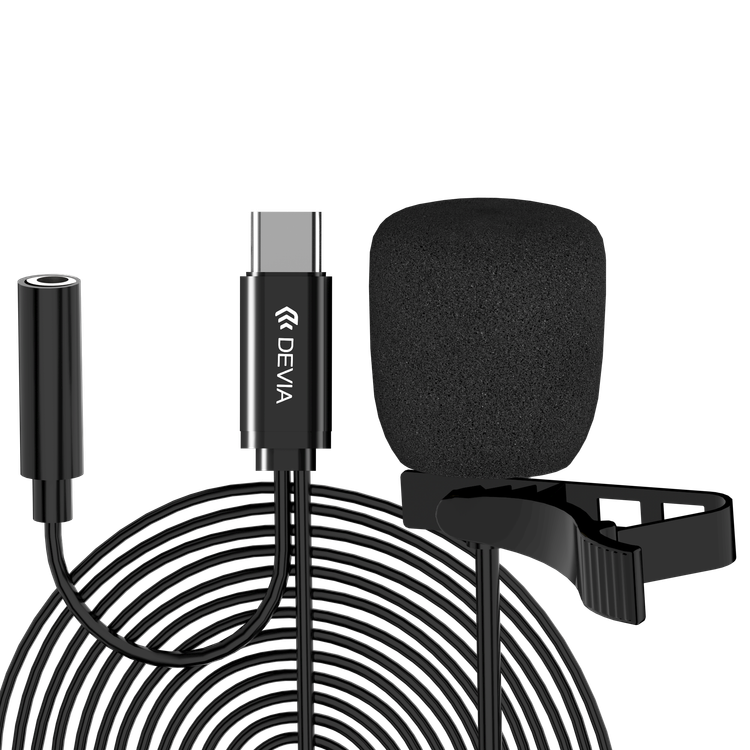 Devia Smart Series Wired Microphone Type-C, Simple and Stylish, Ultra-Lightweight, Hi-Fi Loudspeaker, Made Oxygen-Free Copper Plating Silver Wire + TPE, Durable Cord - Black