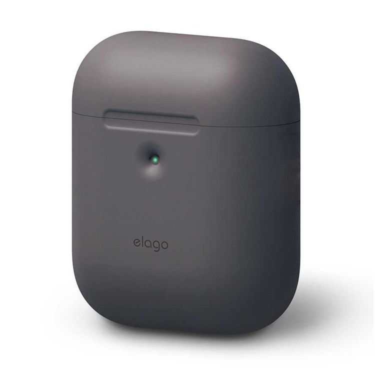 Elago Compatible w/ 2nd Generation Airpods Silicone Case, Smooth & Transparent Thin Wall, LED light Visible, AntiSlip Coating in Cap, Flexible, Shock & Scratch Resistant-Dark Gray
