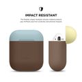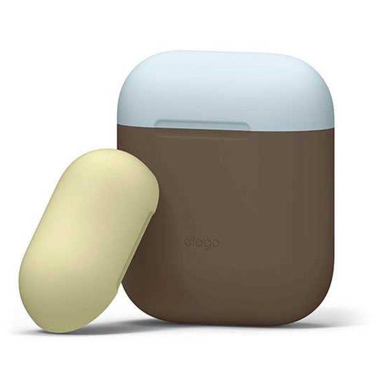 Elago Duo Silicone Case with Apple AirPods Case 1 & 2, Supports Wireless Chargers, Drop Resistant, Dustproof and Absorbing Protective Cover Body-Dark Brown / Top-Pastel Blue, Yellow