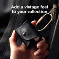 Elago Genuine Leather Case Compatible with Apple Airpods Pro, Vintage Design, Supports Wireless Charging, Brass Ring Holder, Anti-Slip Case, Shock Proof, Bring as Keychain - Red