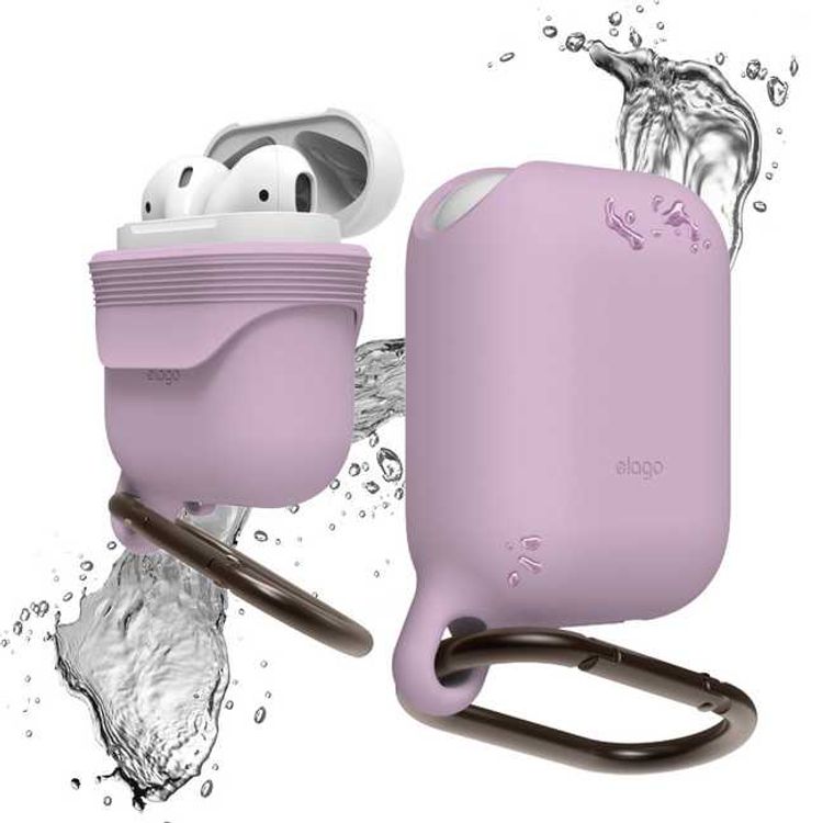 Elago Silicone Waterproof Hang Case with Anti-Lost Carabiner Compatible for AirPods 1/2, Dust Proof and Impact Protection, Scratch Resistant Cover - Lavender Lavender