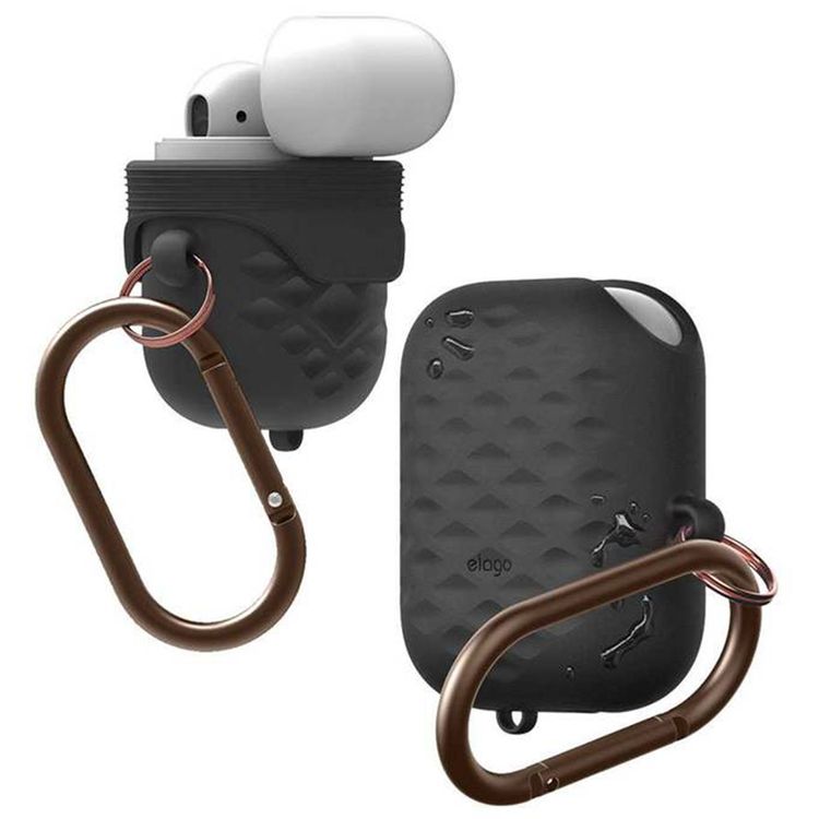 Elago Waterproof Active Case Compatible for Apple Airpods, Waterproof & Dustproof, Convenient for Charging, Aluminum Carabiner for Belt Strap/Bag, Impact Resistant - Black
