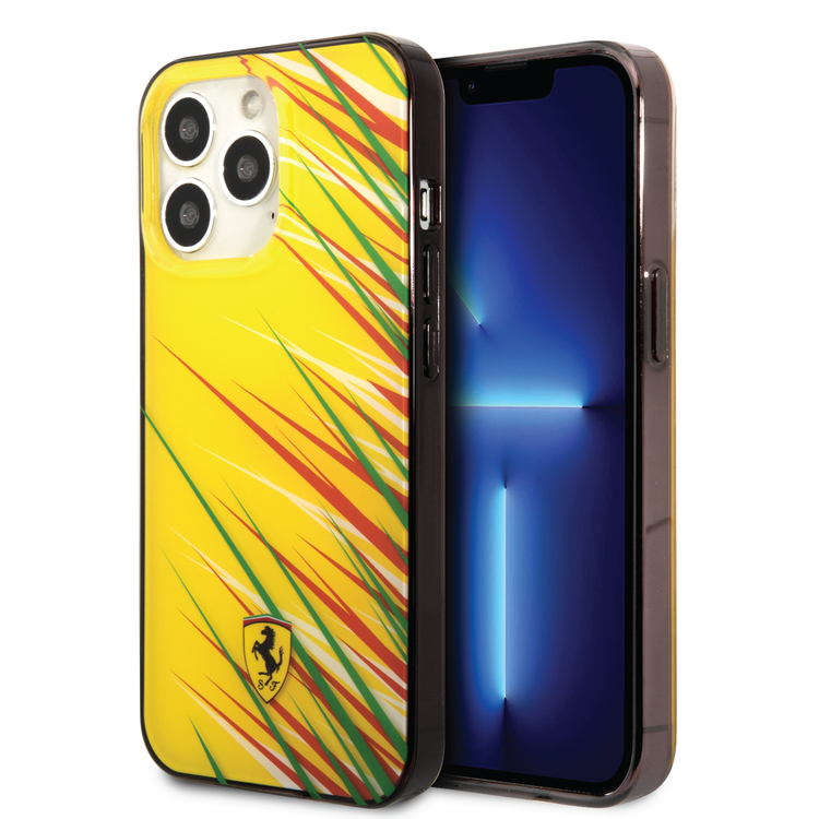 Ferrari PC/TPU Case with Double Layer Grass Print iPhone 14 Pro Compatibility - Yellow