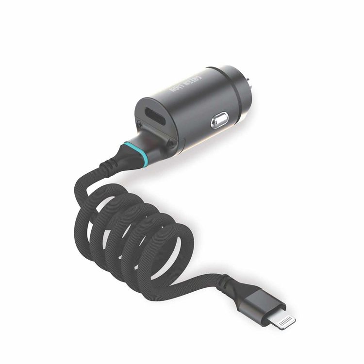 Green Lion 45W PD Car Charger with Integrated Lightning Cable, Charging Protection, Overheat Protection, Innovative Design, Compact & Lightweight - Black