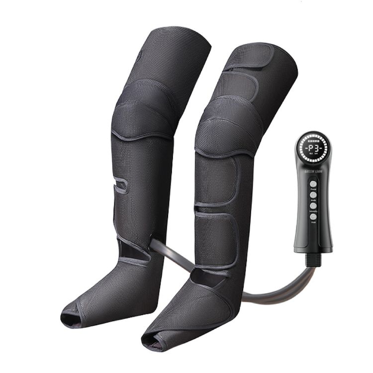Green Lion Air Pressure Leg Massager with 360° Wrap Massaging, Warm Heating, Auto Cycle, 5 Level Intensity, Built-in Timer, Air Compression, 30W Rated Power, 40-50°C Heating Temperature - Black
