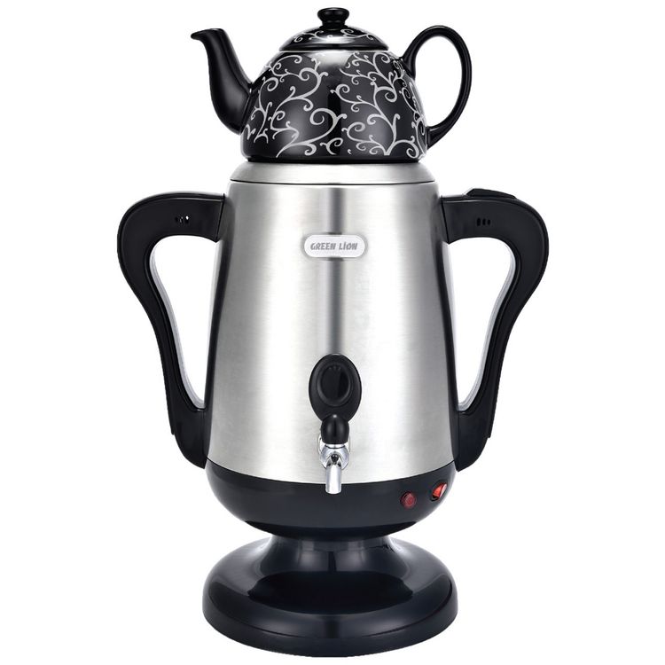 Green Lion Electric Samovar, Energy-Saving Dual System, Automatic Shut-Off for Safety, User Friendly Operation with Indicator Lights - Silver