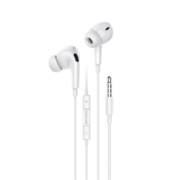 Green Lion GL-Stereo Earphone Pro Wire Control with Microphone, 3.5mm Audio Jack, Cable Control Buttons, 1.2m Cable Length, 10mm Speaker - White