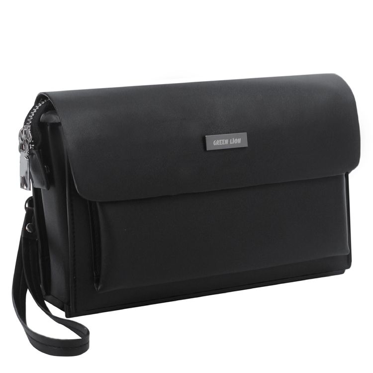 Green Lion Mara Clutch Bag with Multi Pockets, Delicate Texture, Water-Resistant PU Leather, Easy To Carry & Handle, Big Capacity, Fit for Accessories - Black