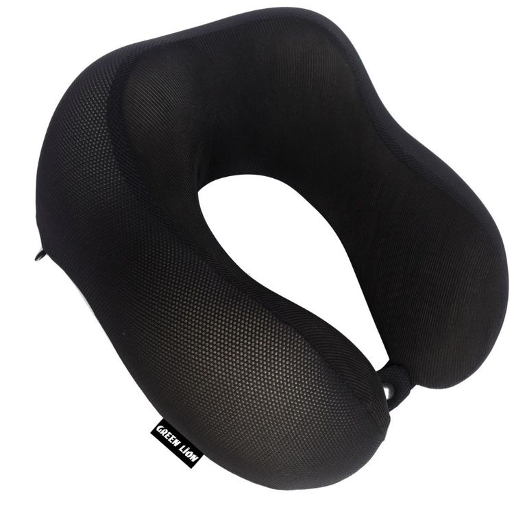 Green Lion Memory Foam Neck Pillow with Polyester Material, Upgraded Design, Lightweight, Breathable, Suitable for Daily Commute - Black