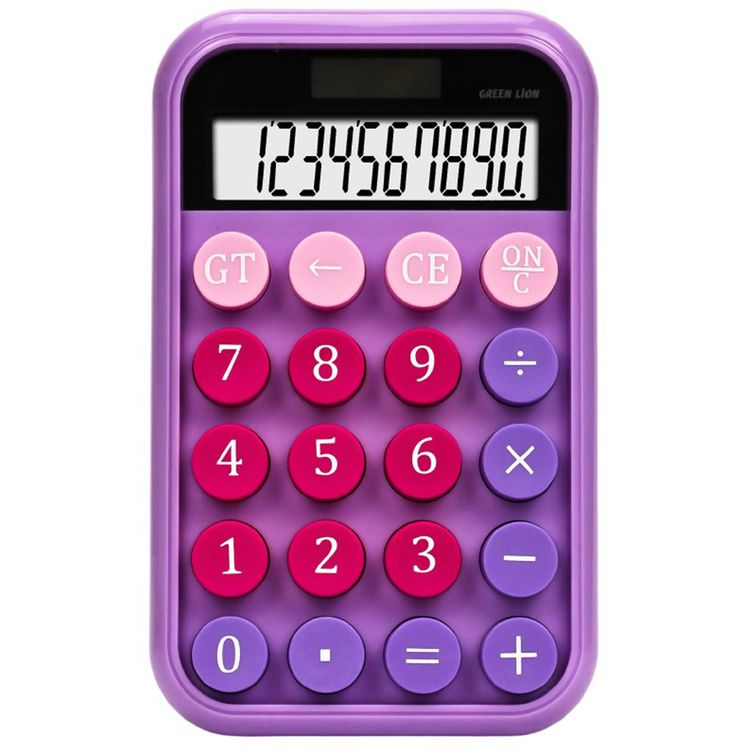 Green Lion Pocket Calculator with 10-Digit LCD Display, Auto Power Off, Dual Solar & Battery Power, ABS Plastic Material - Purple