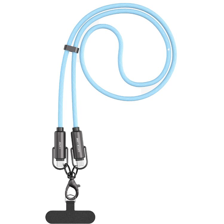 Green Lion Power Lanyard USB-C to USB-C Cable with 60W Power Delivery, Hands-Free Convenience, Tangle-Free Design, 480 Mbps Data Transfer Speed, 120cm Cable Length, 6mm Diameter - Sky Blue