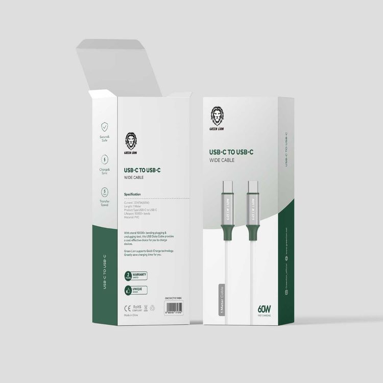 Green Lion PVC USB-C to Type-C Wide Cable 1M PD 60W - White