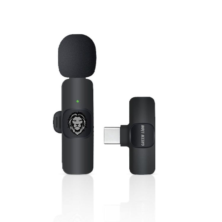 Green Lion Solo Wireless Microphone with Adaptive Noise Reduction, 60mAh Battery Capacity, 5V Input Voltage, USB-A, Type-C, Lightning Plugs, 360° Surround Sound, Highly Sensitive, Clear Timbre, Precise Radio, 5-6 Hours Battery Life - Black