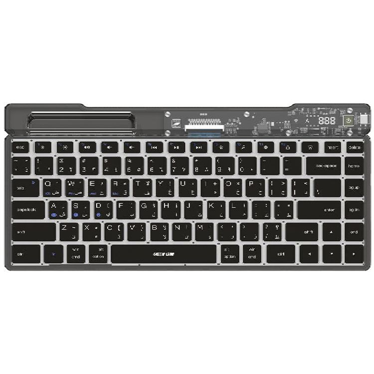Green Lion Transparent Keyboard Scissor Foot Structure with Phone Cradle, LED Display, Intelligent Energy Saving, Touch Power Switch, 3 Million Keystroke Life, 500mAh Battery - Black