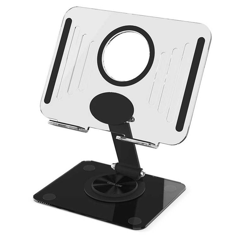 Green Lion Transparent Tablet Stand with 360° Rotating Base, 180° Foldable, Anti-Slip Silicone, 360° Rotating Base - Black