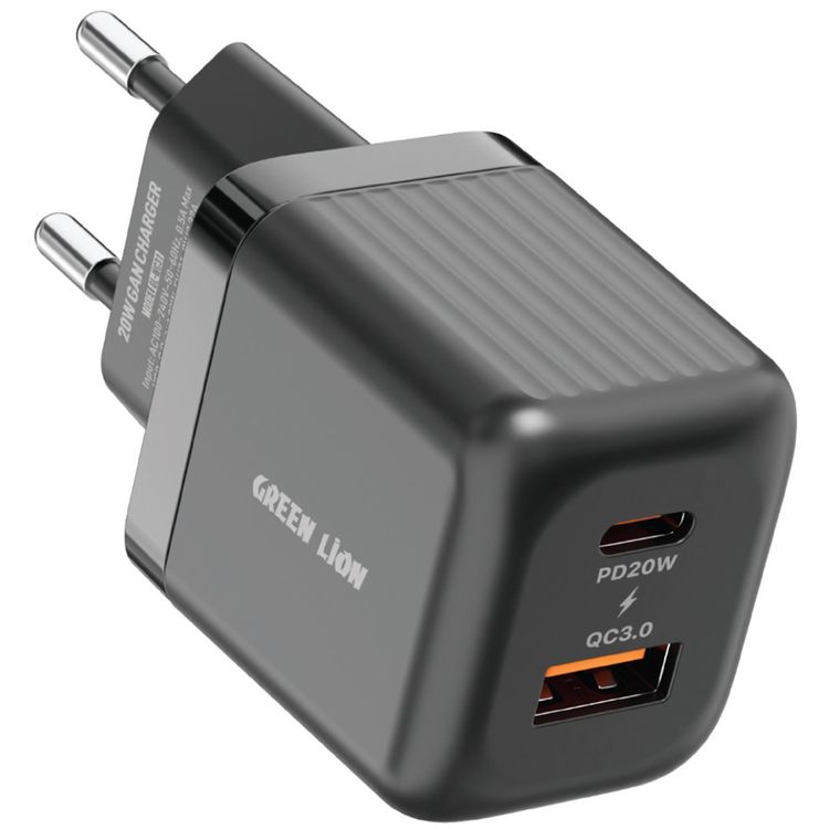 Green Lion Ultra Compact GaN Wall Charger with Dual USB-C & USB-A Ports and PC Flame Retardant Material, Fast Charging Support, Charging Protection, Universal Compatibility, Ultra Portable - Black