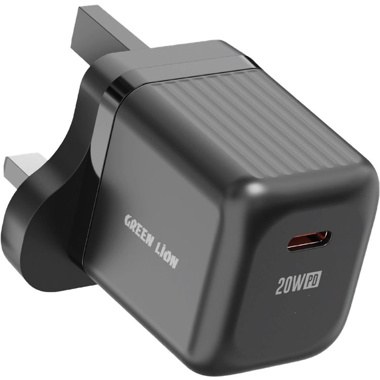 Green Lion Ultra Compact GaN Wall Charger with Single USB-C Port and PC Flame Retardant Material, Fast Charging Support, Charging Protection, Universal Compatibility, Ultra Portable - Black