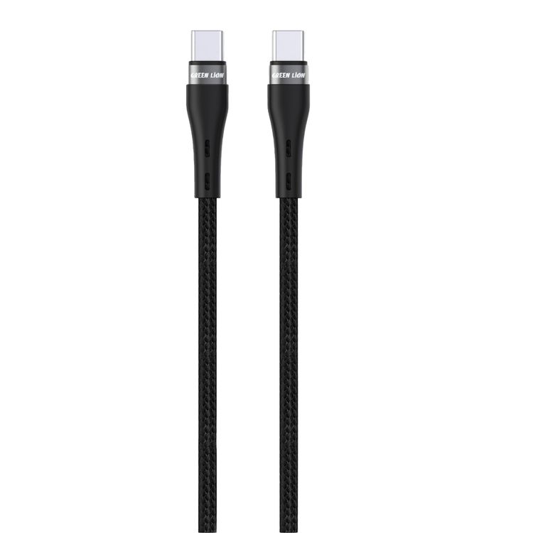 Green Lion USB-C to USB-C Braided Cable, 60W, Secure & Safe, Charge & Sync, Wide Compatibility, 1m Cable Length, 10000 Bends Life Span - Black
