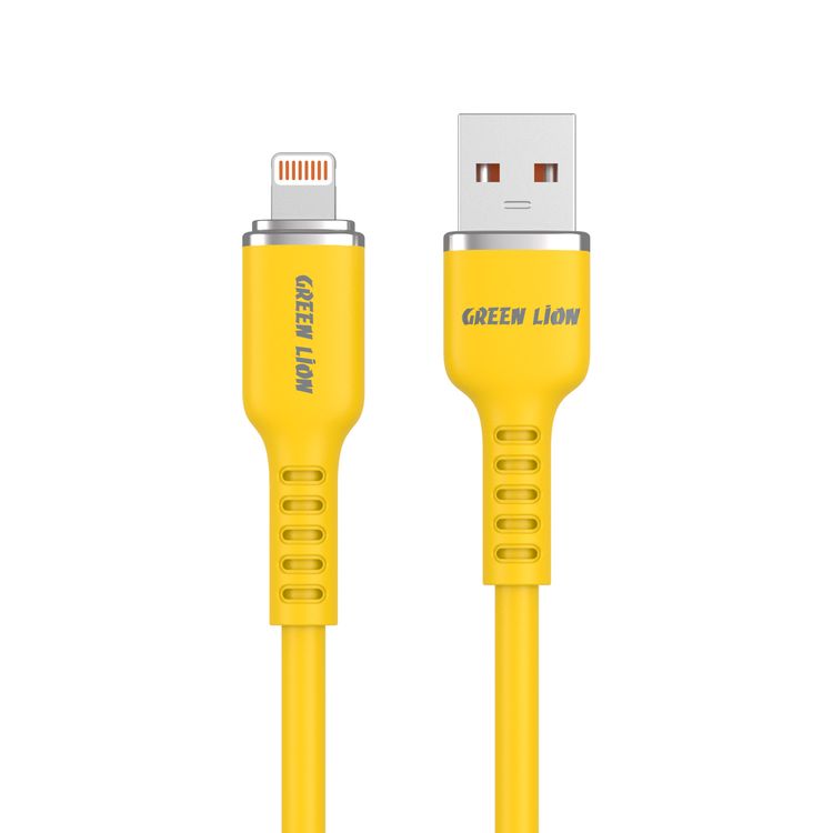 Green Lion USB-A to Lightning Silicone Cable 1m, 480Mbps Transfer Speed, 12W, Fast Charging & Sync, More than 10,000 Bends Life Span, Safe & Secure - Yellow