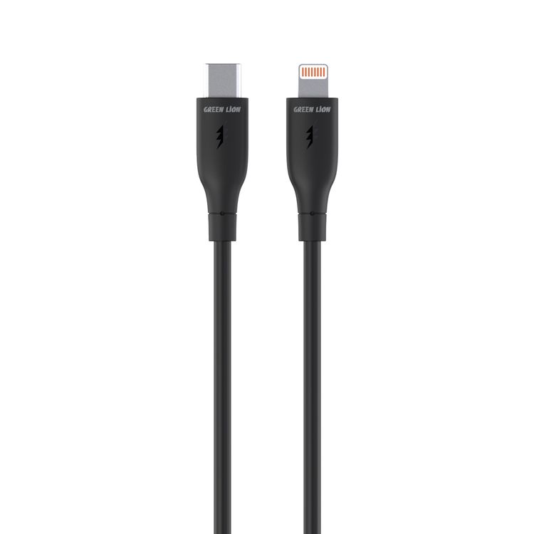 Green Lion USB-C to Lightning PVC Cable 1m, 480Mbps Transfer Speed, 18W, Fast Charging & Sync, More than 10,000 Bends Life Span, Safe & Secure - Black
