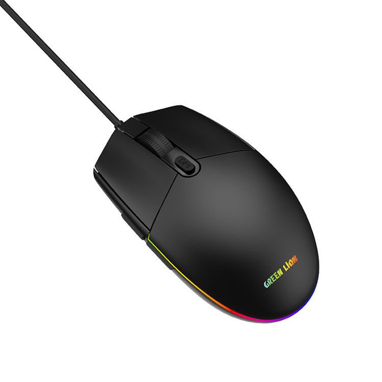 Green Lion Wired Gaming Mouse with 6 Keys, RGB Colors, USB Interface, 1.5M Cable Length, Lightweight & Innovative Design - Black