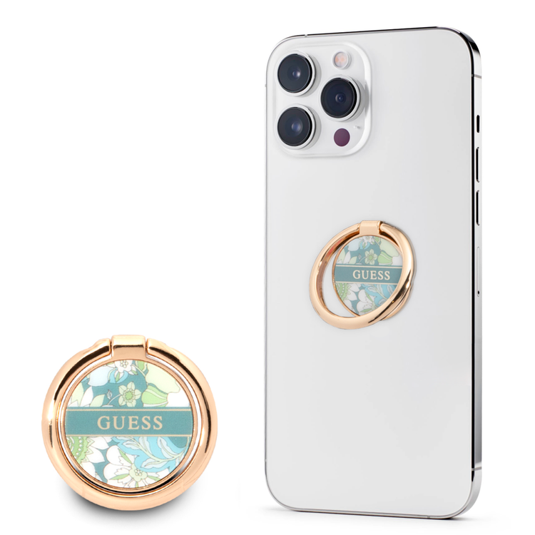 Guess Metal Ring Stand 4G, Compatible with All Smartphone - Flower Green