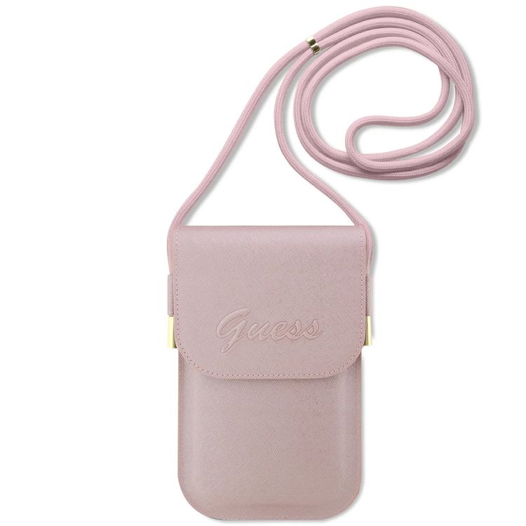 Guess Saffiano Phone Bag Wallet with Embossed Logo, Adjustable Padded Shoulder Strap, Lightweight & Easy to Carry - pink