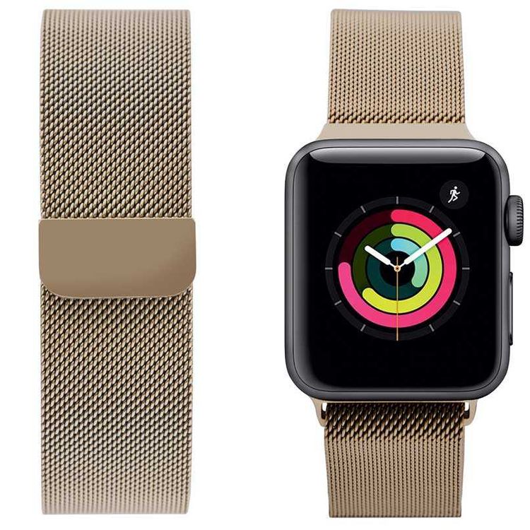 iGuard by Porodo Metal Mesh Band for Smart Watch, Fit & Comfortable Replacement Wrist Band, Adjustable Straps Compatible for Apple Watch 44mm / 42mm - Pale Gold