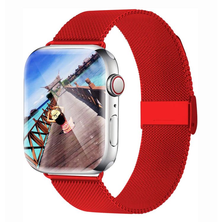 iGuard by Porodo Metal Mesh Band for Smart Watch, Fit & Comfortable Replacement Wrist Band, Adjustable Straps Compatible for Apple Watch 44mm / 42mm - Chinese Red