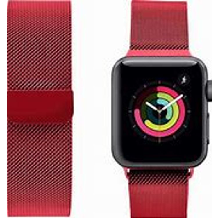 iGuard by Porodo Metal Mesh Band for Smart Watch, Fit & Comfortable Replacement Wrist Band, Adjustable Straps Compatible for Apple Watch 40mm / 38mm - Chinese Red