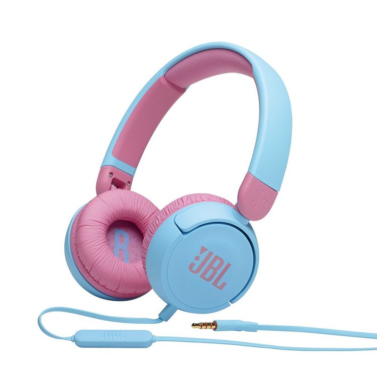 JBL Junior 310 Wired Kids Headphones with Built-In Microphone, Comfortable Fabric Headband, Tangle Free Cable - Blue