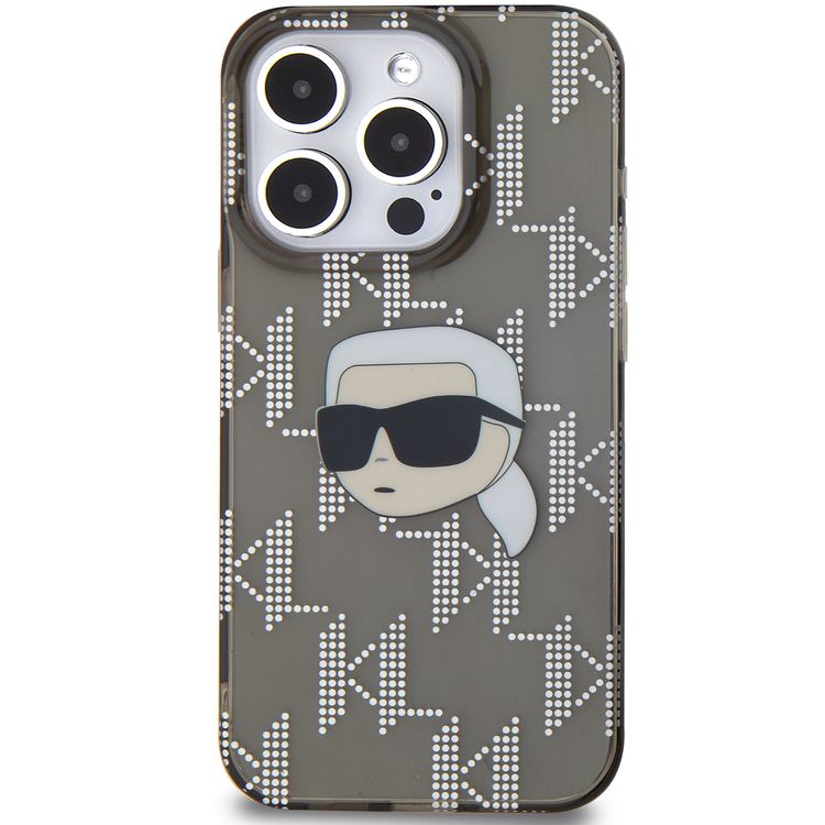 Karl Lagerfeld IML Hard Case for iPhone 16 Pro Max with Electroplated Karl Head & Monogram Design, Comfortable Grip, Slim Profile, Drop Protection, Sustainable Packing - Black