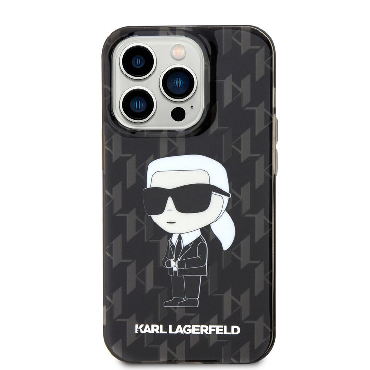 Karl Lagerfeld IML Hard Case with Iconic Monogram for iPhone 16 Pro Max, Drop Protection, Slim Profile, Lightweight, Comfortable Grip, Sustainable Packing - Black