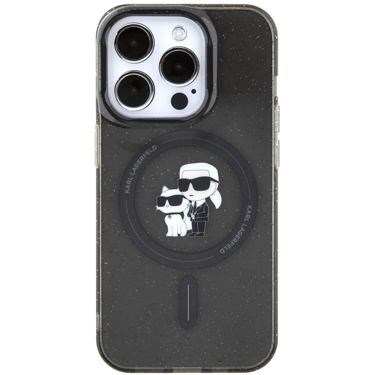Karl Lagerfeld Magsafe IML Glitter Hard Case for iPhone 16 Pro with Karl & Choupette Logo, Slim Profile, Easy Snap-on, Drop Protection, Lightweight, Sustainable Packaging- Black