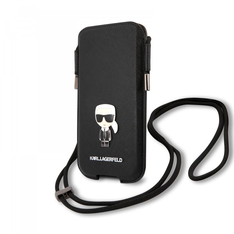 Karl Lagerfeld PU Saffiano Pouch With Karl Ikonic Large - Black