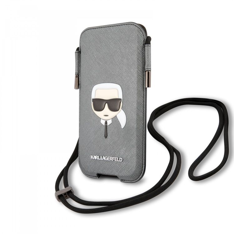 Karl lagerfeld PU Saffiano Pouch With Karl`s Head Large - Silver