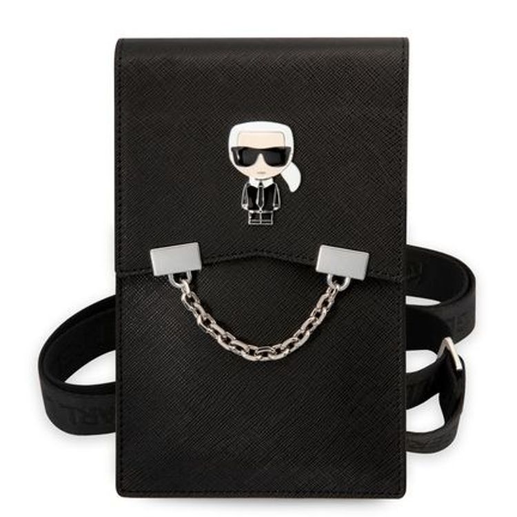 Karl Lagerfeld Wallet with Chain and Karl Ikonik Metal Logo, Bag for Phone, Document, Money or Key and etc. - Black
