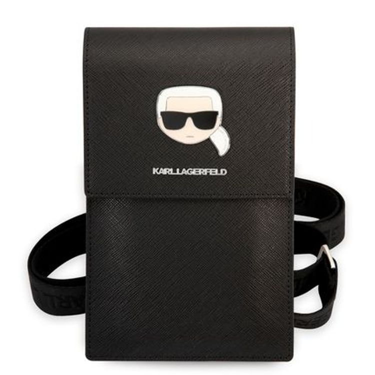 Karl Lagerfeld Wallet With Karl Head Metal Logo, Bag for Phone, Document, Money or Key and etc. - Black