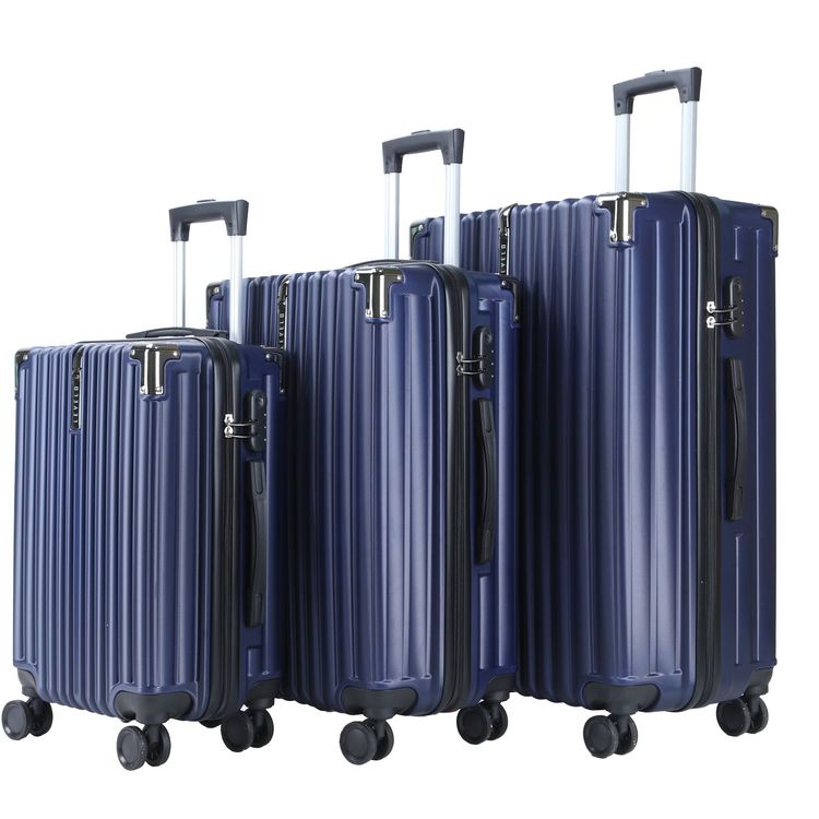 Levelo 3-Set ABS Luggage with Built-in Weighing Scale, Combination Lock, Iron Trolley, Double Wheels, Impact-Resistant Corners & Shock-Resistant, PP & Soft Rubber Handle - Dark Blue