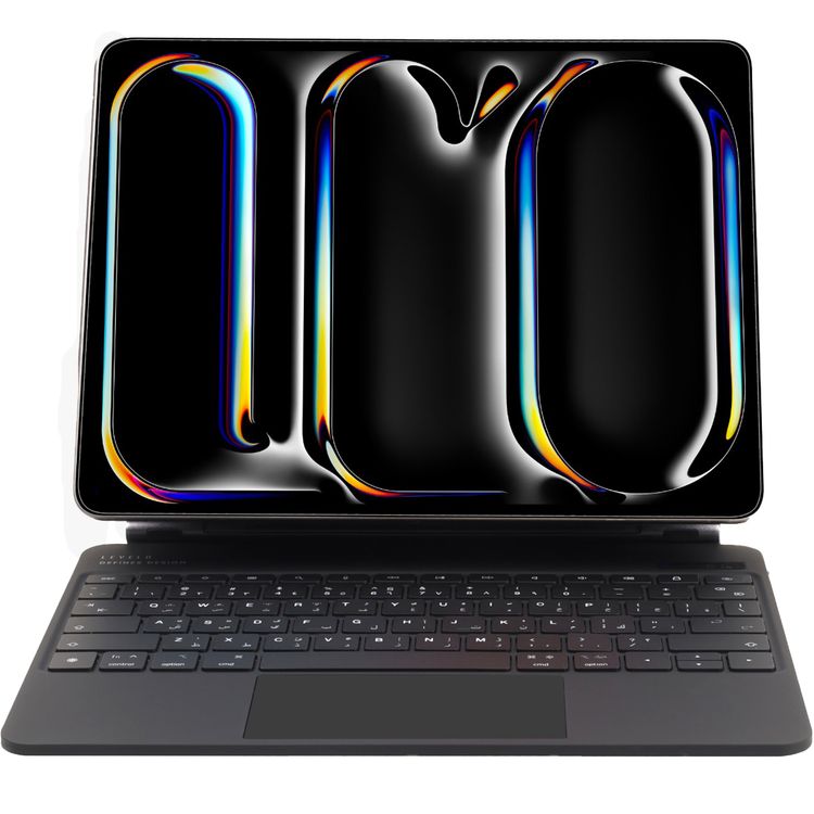 Levelo AeroBoard Saffiano Leather Wireless Keyboard For iPad Pro 11" 2024, Adjustable Angle, Ambient Glow Layout, Built-in Touchpad, 500mAh Battery Capacity, Scissor Feet Technology Keys - Black