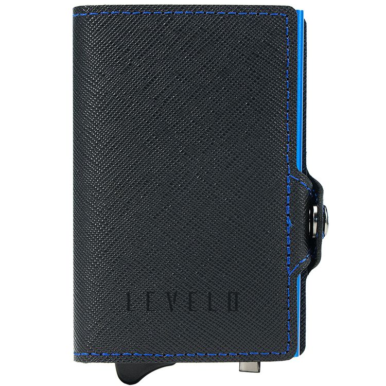 Levelo Cache Genuine Leather Wallet, Lightweight & Compact Design, Rfid Protection, 8 Card Slots, Money Clip, Coin Slot - Black