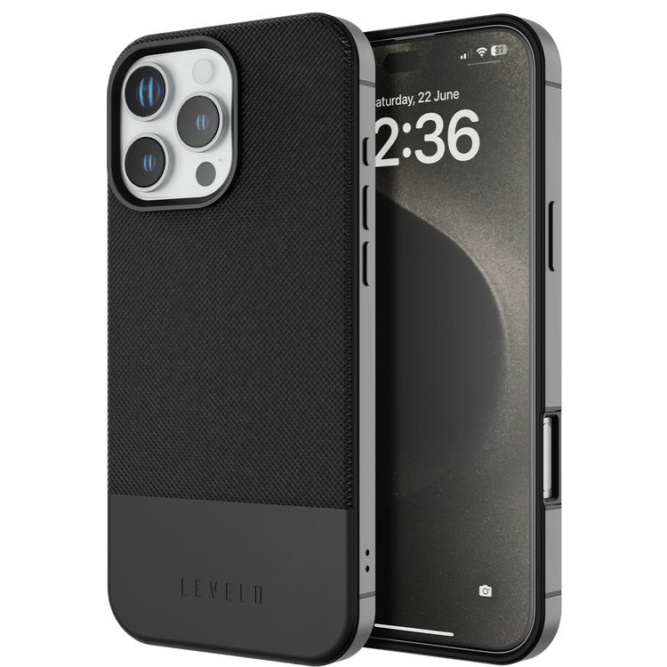 Levelo Cuir Two Tone Leather Case For iPhone 16 Pro, Durable, Compact Design, MagSafe Compatible, Hybrid Case, Impact-Resistant Corners, Aluminum Bumper Finish, High Quality Material - Black