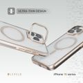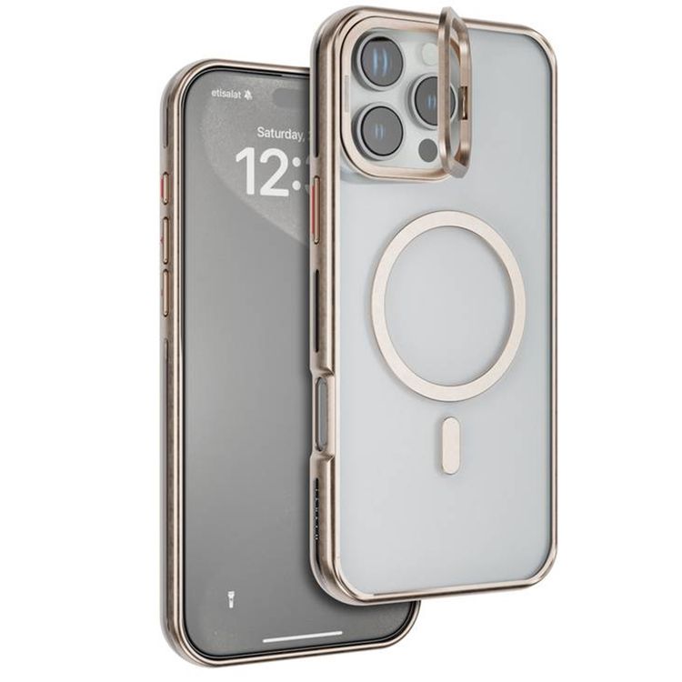 Levelo Elio PC Case with Camera Ring Stand for iPhone 16 Pro, Built-in Kickstand, MagSafe Compatible - Rose Gold Titanium