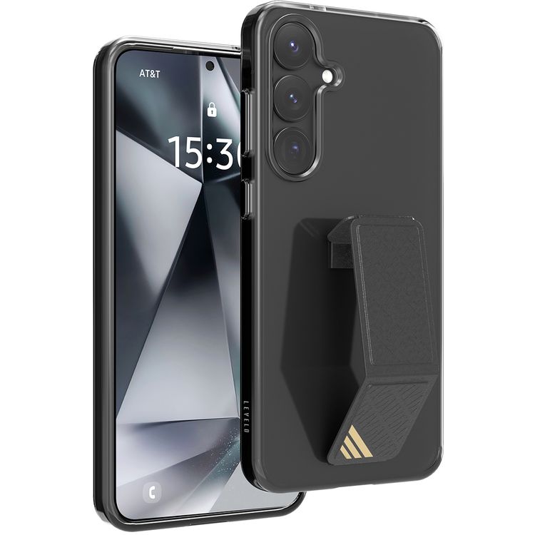 Levelo Morphix Clara Case with Built-in Leather Grip for Samsung Galaxy S25 Plus, TPU Material, Impact-Resistant Corners, Metal Camera Ring, Hybrid Material - Black