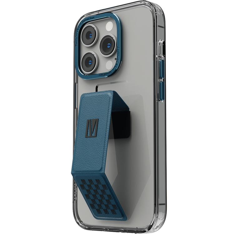 Levelo Morphix Clara Gripstand Protective Case IMD, Clear Back, iPhone 14 Pro Max Compatibility - Blue