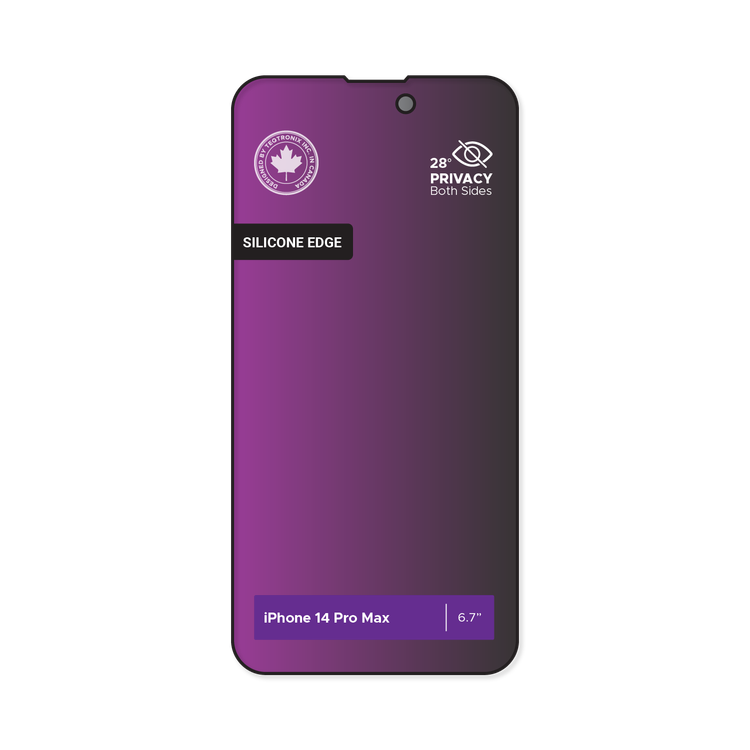 Levelo Privacy Tempered Screen Protector, Black-Edition Silicone Edge, iPhone 14 Pro Max Compatibility - Black