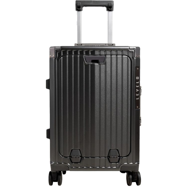 Levelo RoamRollers Travel Luggage with an Aluminum Body, USB-A & USB-C Output, Metal Corner Protection, Front Pocket Compatible with Up to 15.6" Laptop, Phone Holder and Cup Holder, Silent Spinner Wheels - Black