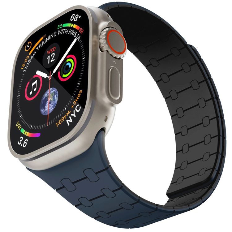 Levelo Royallink Silicone Watch Strap Dual-Color for Apple Watch 49/46mm, Hypoallergenic Material, Built-in 32 Magnets, Water Resistant and Sweat Proof, Strong Magnetic Attachment, Easy Snap-on - Blue / Black