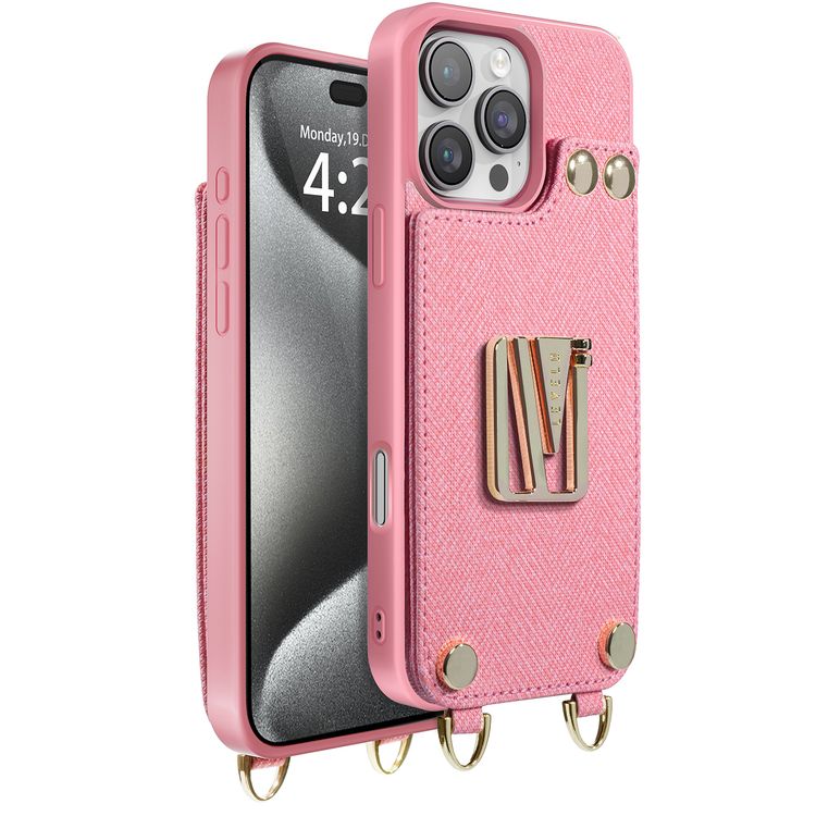 Levelo Serena Leather Case for iPhone 16 Pro, RFID Blocking Material, Built-in Kickstand, Impact-Resistant Corners, 3 Slots Card/Cash - Pink